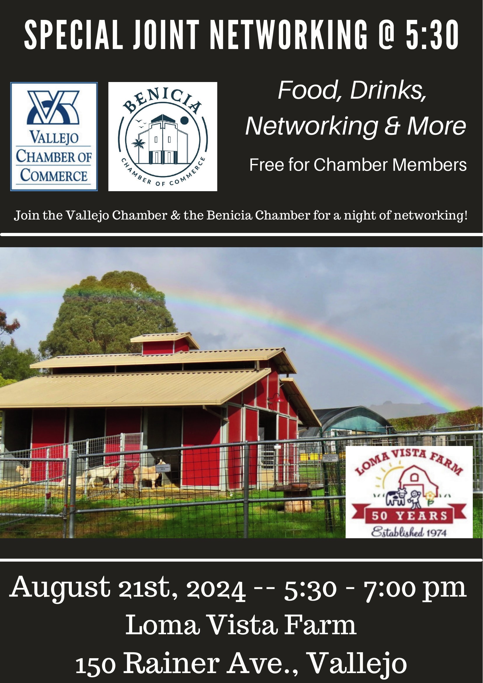 August special joint mixer Vallejo and Benicia Chamber of Commerce hosted by Loma Vista Farm