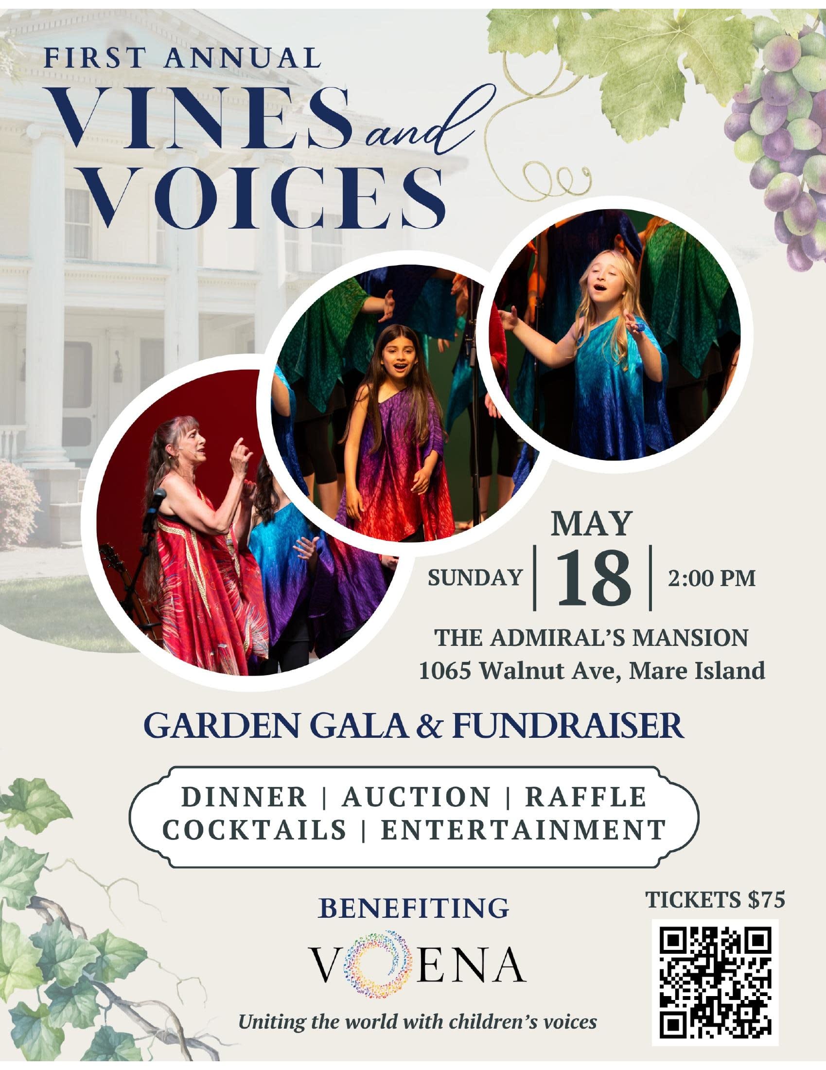 Sunday May 18th at 2pm, Vines and Voices Garden Gala & Fundraiser benefiting Voena. Dinner, Auction, Raffle, Cocktails and Entertainment Tickets are $75Images