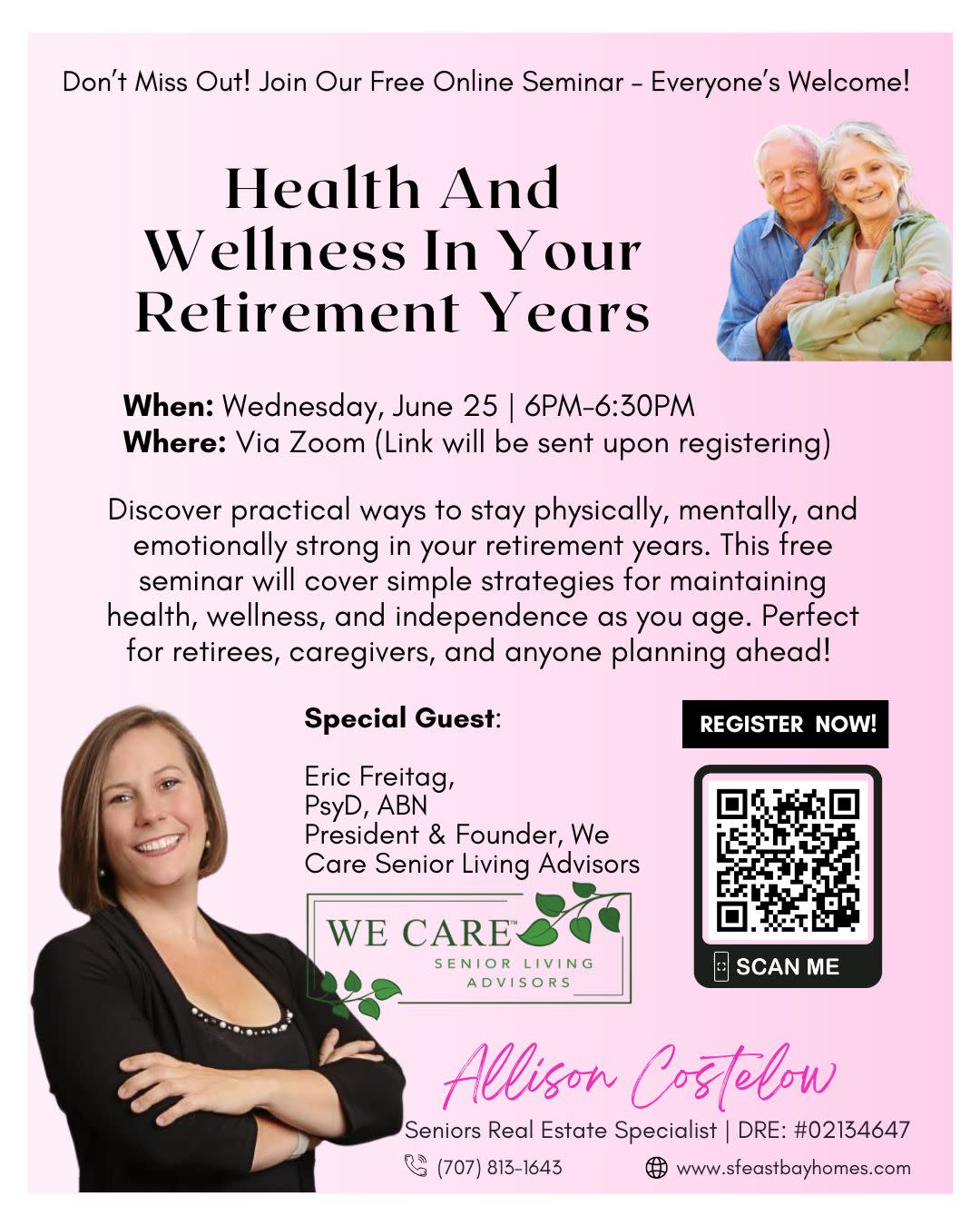 Discover practical ways to stay physically, mentally, and emotionally strong in your retirement years with this free seminar. Register to reserve a spot!Images
